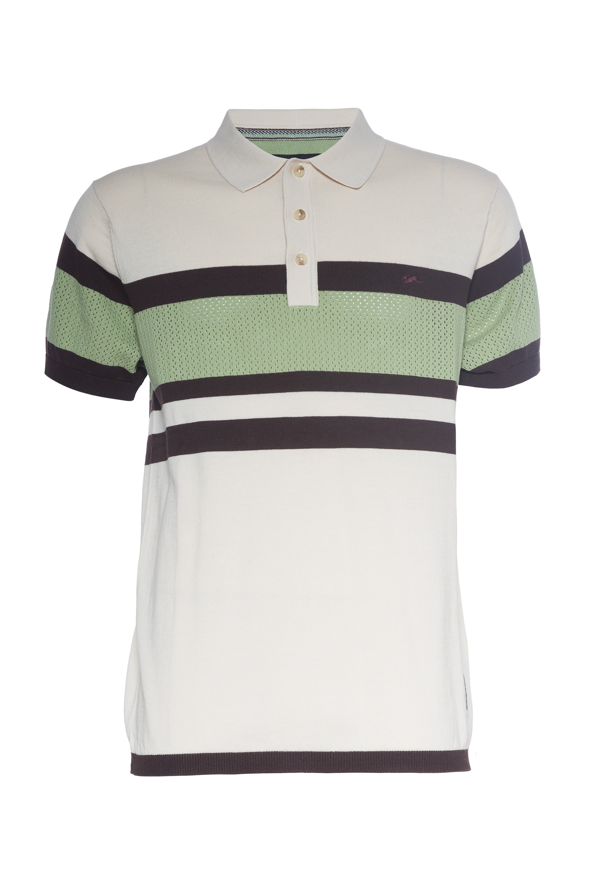 - Short sleeve Jacquard mesh sweater knit polo with stripes