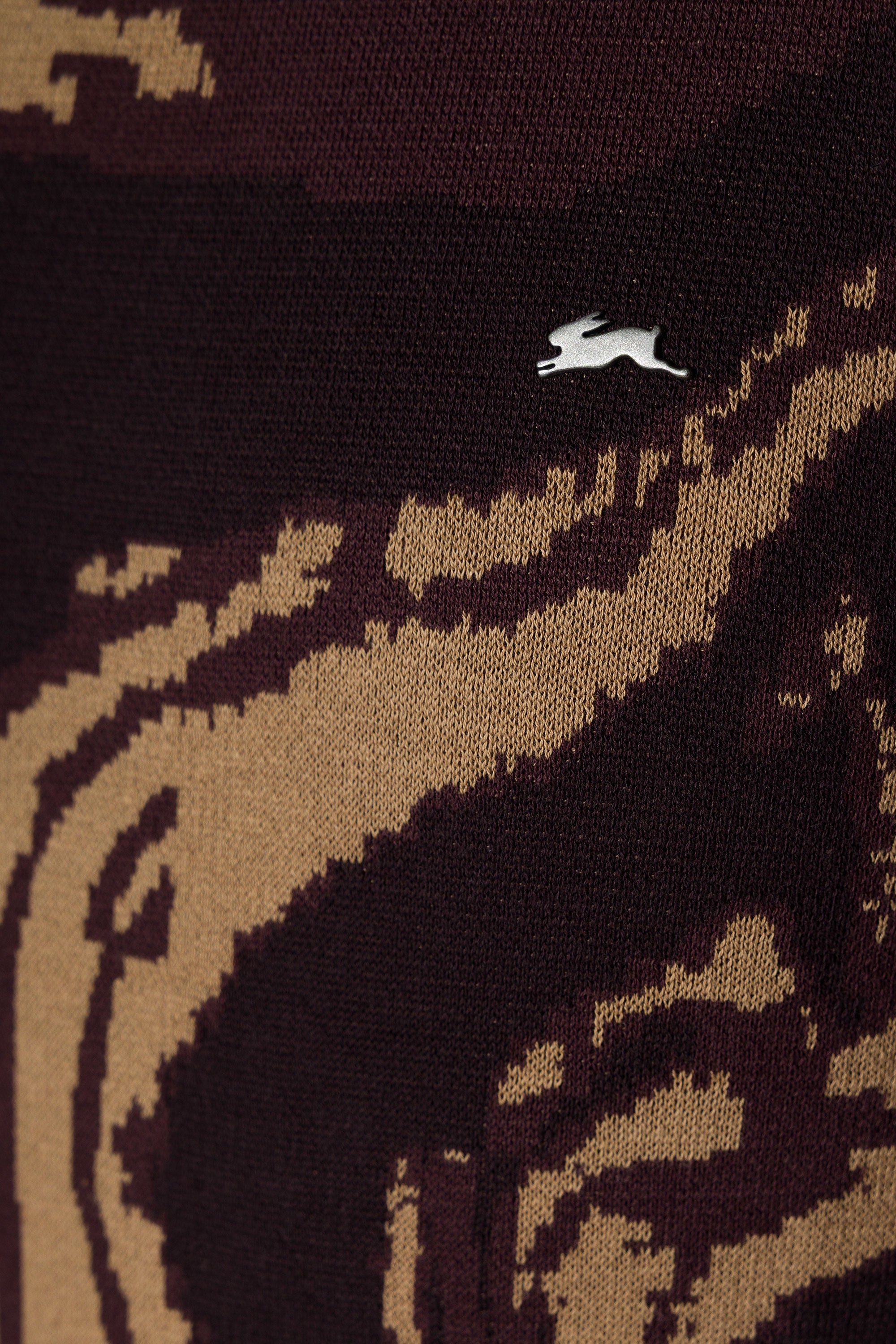 - Sweater knit ribbing at collar, hemband, and cuffs