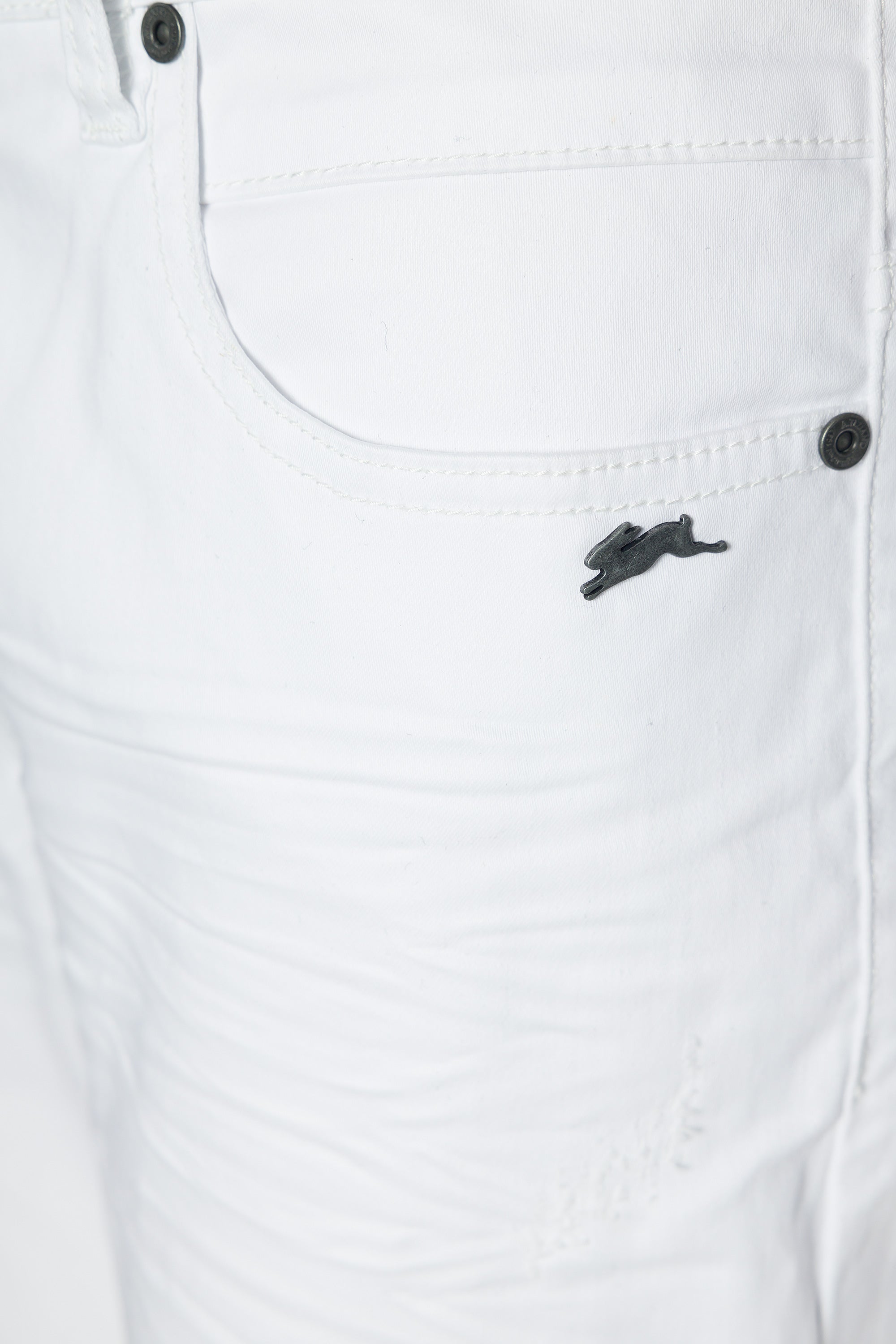 - Signature leather label at the back right waistband