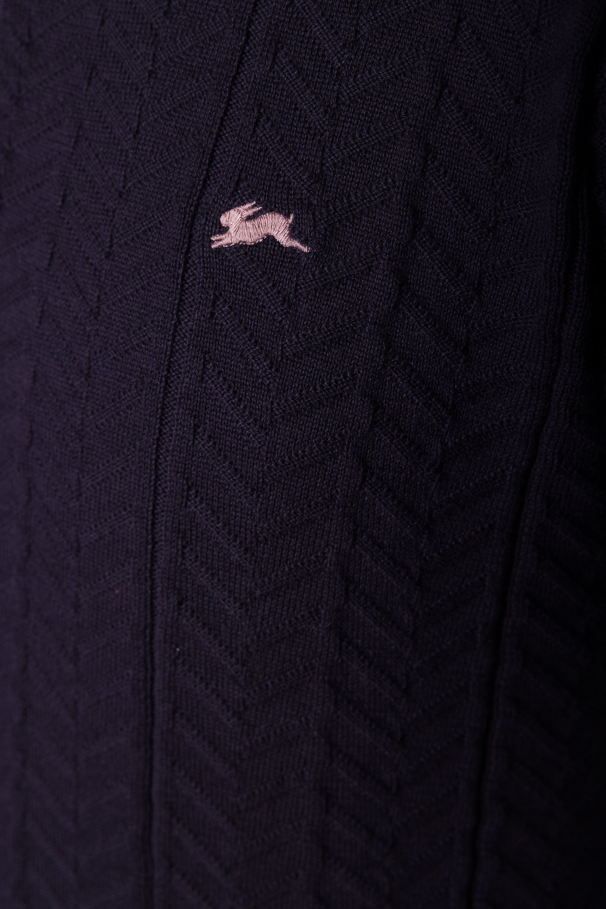 - Rabbit embroidery at the left chest