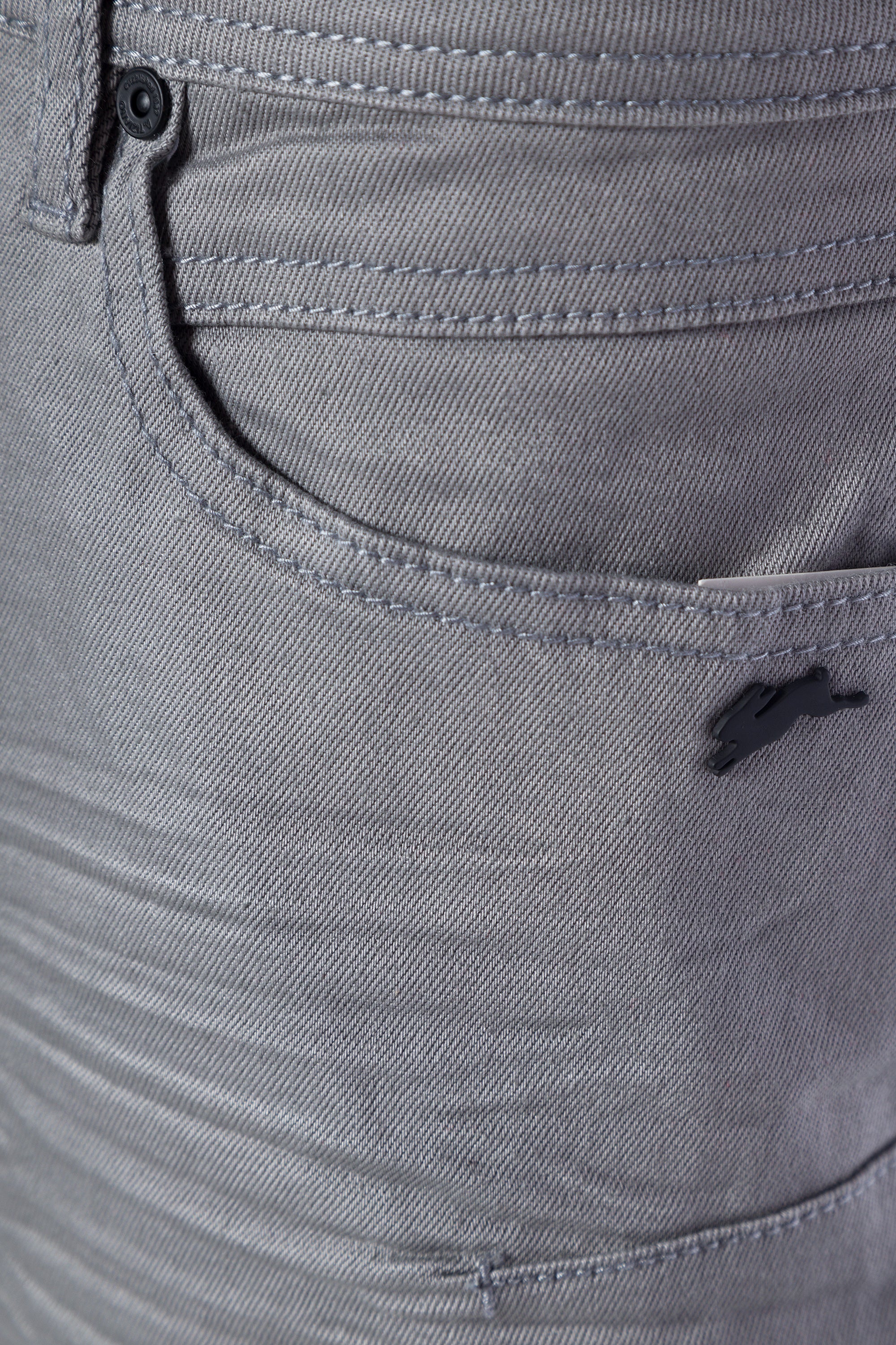 Solid 5-pocket jean with leg piecing and articulation at the knee. Finished with a rinse wash, standard 3D pleating and our signature A.T rabbit pin placed below the front left pocket and leather label at the back waistband.